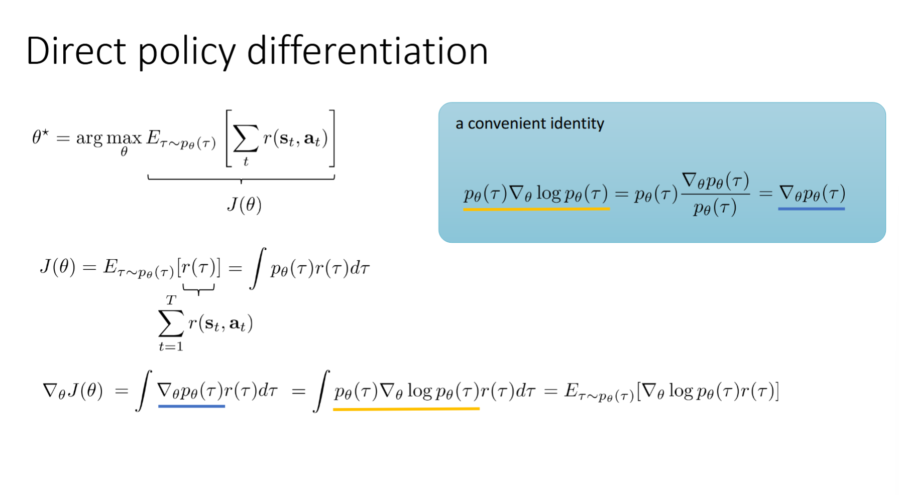 rl 的目标就是找一个最大化期望回报的策略 π, 等价于找到最好的策略参数 θ, 可以使用和机器学习类似的梯度下降, 只不过这个梯度比较特殊,下面引用 cs285 的 ppt:
