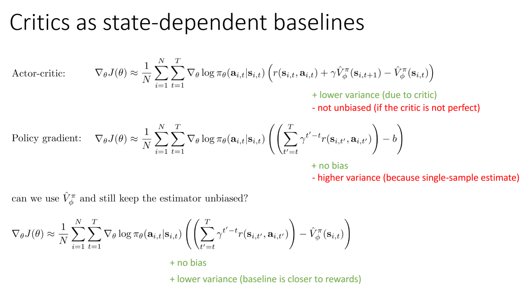 上面提到, 基于神经网络的评论家能实现有偏下的低方差, 策略梯度则是无偏的高方差, 那么有办法得到无偏的低方差更新梯度吗?