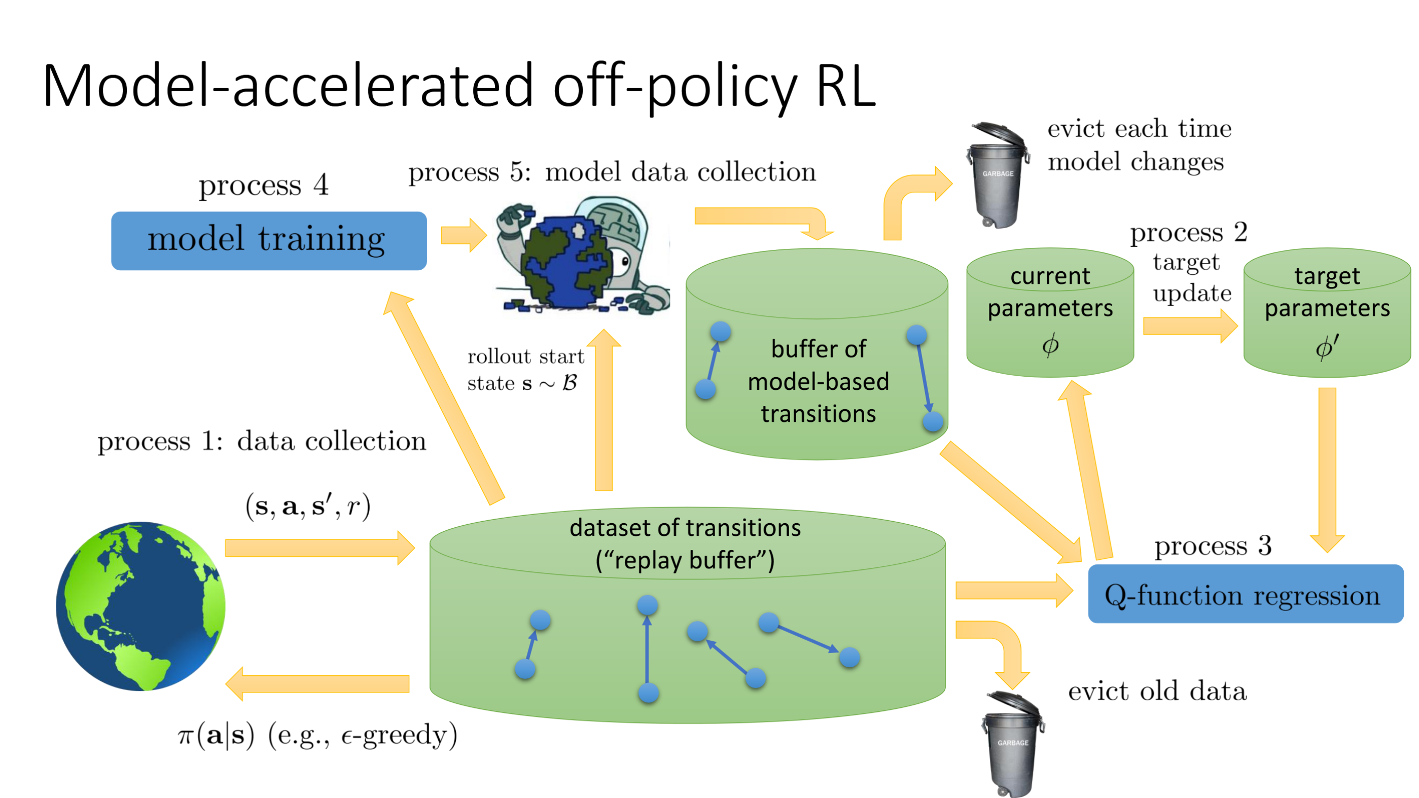课程此前提到过的 off-policyrl, 例如 Q 学习实质上依旧依赖一个数据 buffer, 执行有偏的策略或者 Q 函数更新, 因此必须每隔一段时间更新数据或者让一个子进程来不断更新 buffer