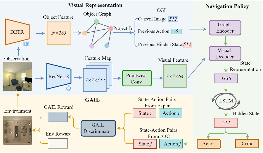 - Context-Aware Graph Inference and Generative Adversarial Imitation Learning for Object-Goal Navigation in Unfamiliar Environment